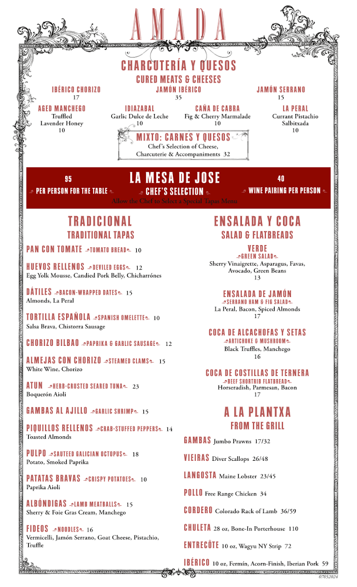 Welcome to Amada, a culinary gem nestled in Atlantic City, NJ. This vibrant restaurant offers a menu rich in Mediterranean flavors and seafood delights. A highlight is the Raciones section, featuring the exquisite Zarzuela—a seafood and chicken stew brimming with mussels, shrimp, and spiced chicken, paired beautifully with toasted baguette. The Lubina, a whole roasted branzino, is another must-try, infused with citrus and complemented by a creamy coconut sauce.